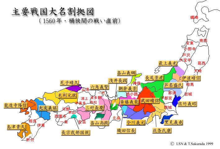 Warring States era Japan with important demesnes marked. Brought to you courtesy of this economic conspiracy-theory blog, of all things.